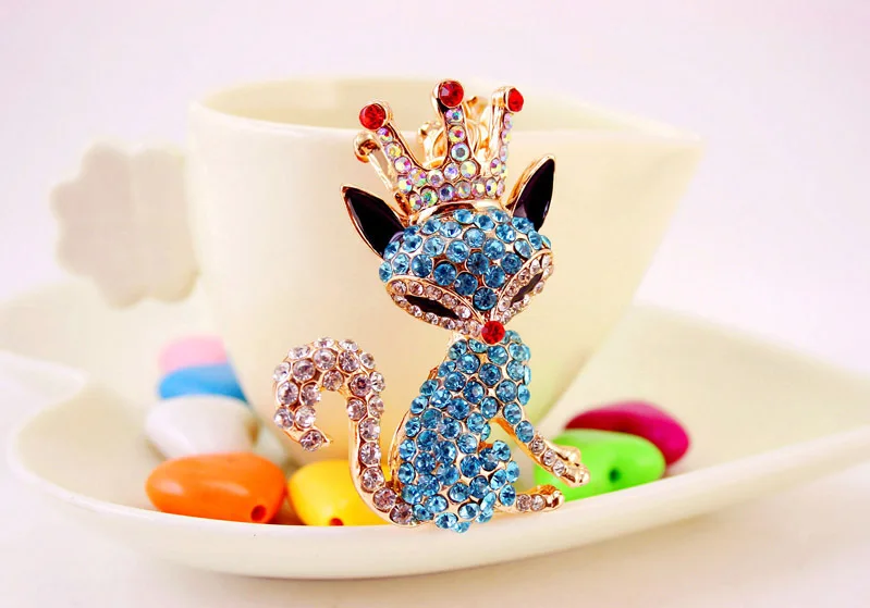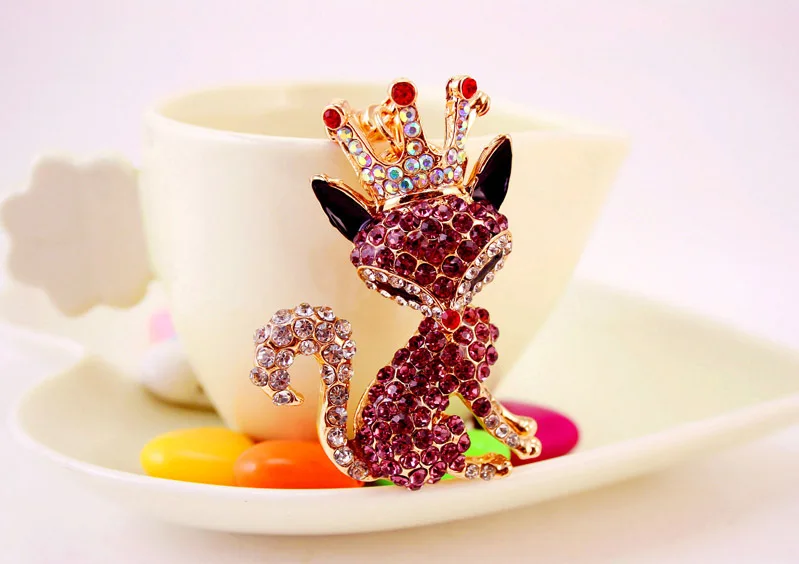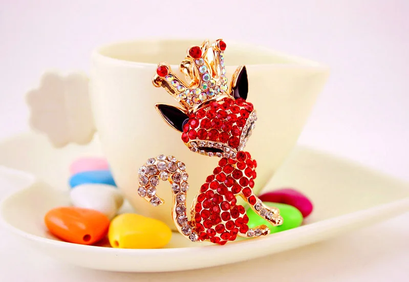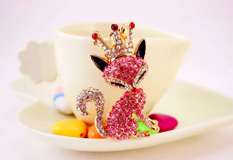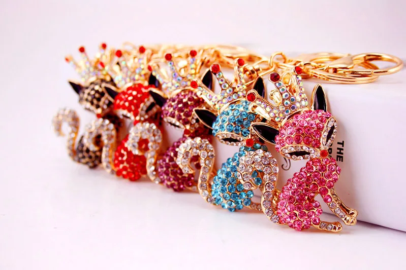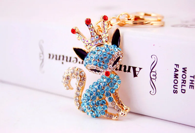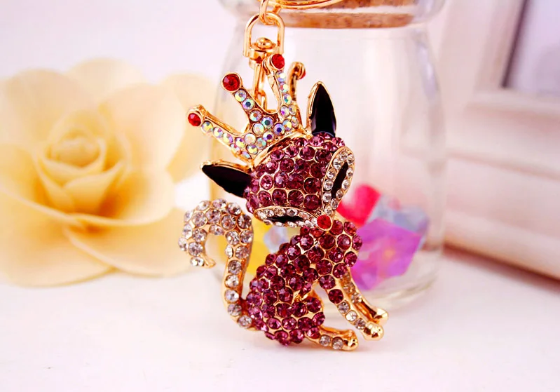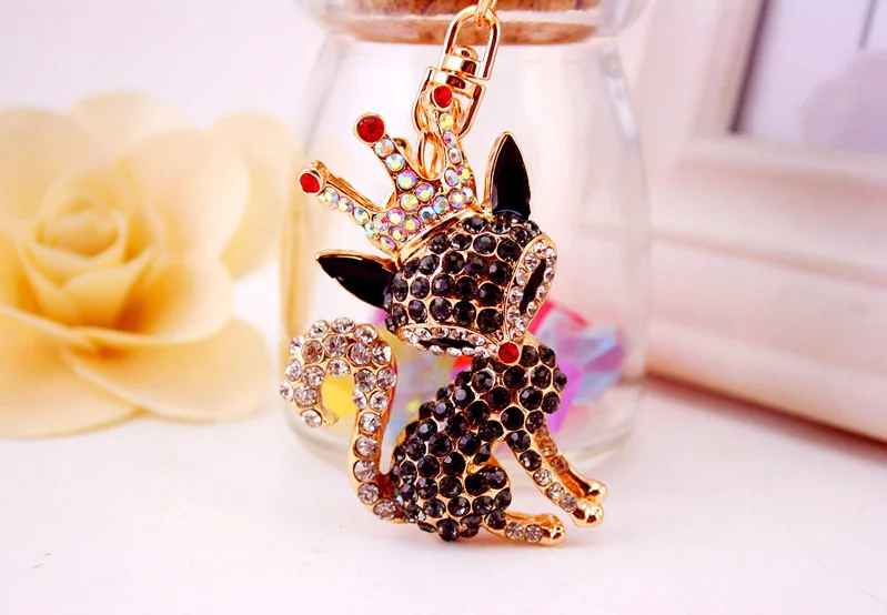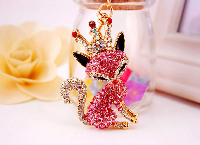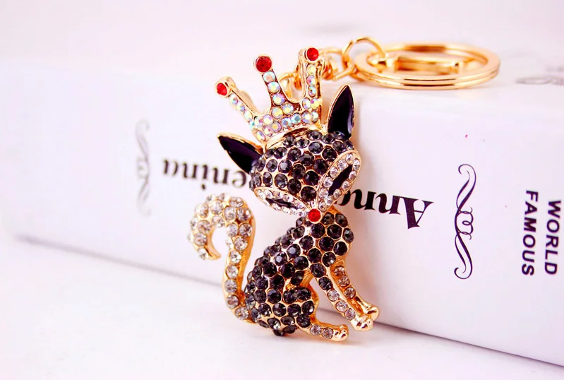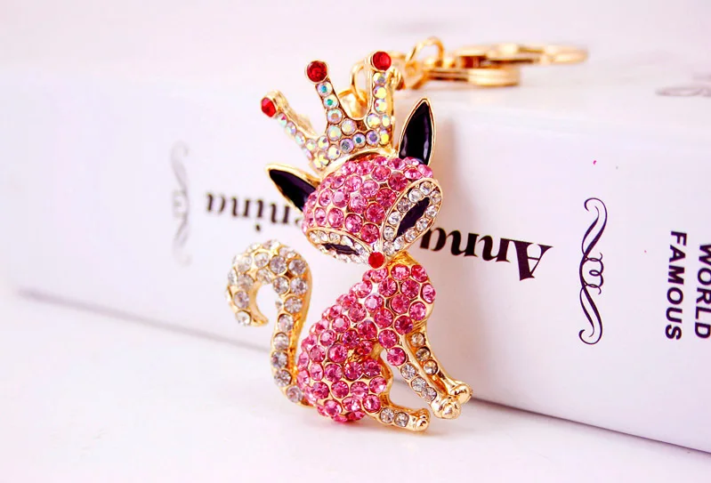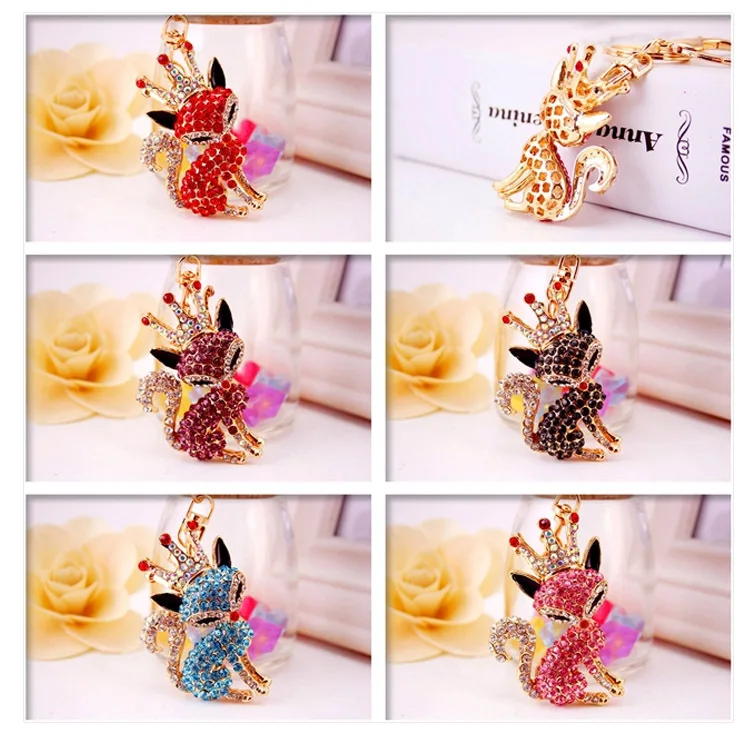 Fashion Creative Lovely Crystal Crown Fox Car Pendant Keychain For Women Bag Keychains Rhinestone Car keyrings Gifts Jewelry