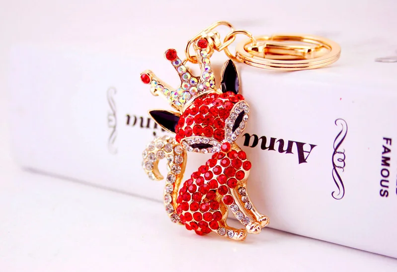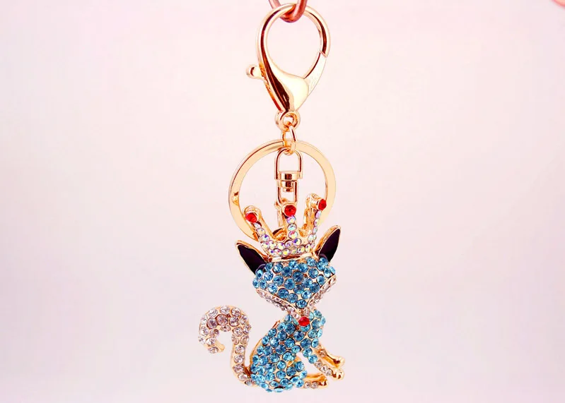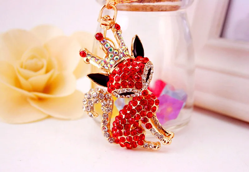 Crystal Crown Fox Car Pendant Keychain For Women Bag Keychains Rhinestone Car keyrings
